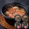レンジで簡単にできる小鍋ギフト。北海道産牛を使用したすき焼き小鍋2食と、3種類の小鍋が選べるギフトです。甘えびと野菜が入った甘えび汁鍋です。