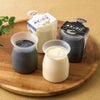 北海道産乳脂肪47%の濃厚な生クリームと北海道産生乳をベースに作られたリッチミルクプリン、黒ごまペーストを加えた黒ごまプリンをセット。